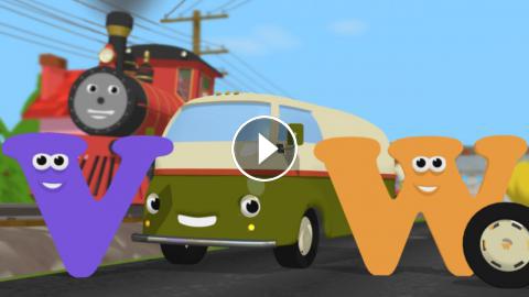 Английский детям. Машинка, микроавтобус, тепловоз - чего только нет в новой серии. И конечно же, Паровозик Шонни, который готов прийти на помощь в любую минуту. Сегодня Шонни помогает микроавтобусу со спущенным колесом и знакомит малышей с буквами V(ви) и W(дабл-ю).