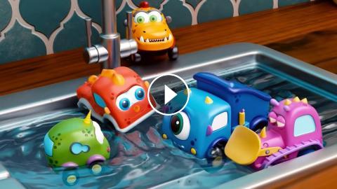 Смотри, на столе осталась грязная посуда, а посудомоечная машинка не работает. Машинки монстрики Мокас помогут с уборкой! Только сначала придется помыть грузовика Гру, который испачкался. Машинки, трансформируемся! Були включит воду и помоет губкой Гру, а остальные будут ему помогать. Маленький экскаватор Экс достанет посуду из раковины, а подъемный кран Крэй - из машинки. Смотри, как маленькие машинки монстрики мыли посуду и купались в раковине!