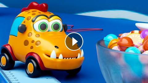 Машинки Мокас любят конфетки, Экс забрался на стол за вкусняшкой. Как вкусно! Надо угостить всех машинок монстриков. Экс трансформируется в экскаватор и сбрасывает вниз разноцветные леденцы. Машинкам очень понравились конфетки, но их так много... Что же с ними делать? Игрушечные машинки привезли к конфеткам много канцелярских предметов, интересно, зачем?