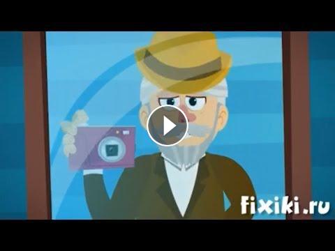 Фиксик Дедус рассказывает о появлении первых фотокамер, фотопленке и негативах, о переходе к современным цифровым фотоаппаратам и удобстве их использования.